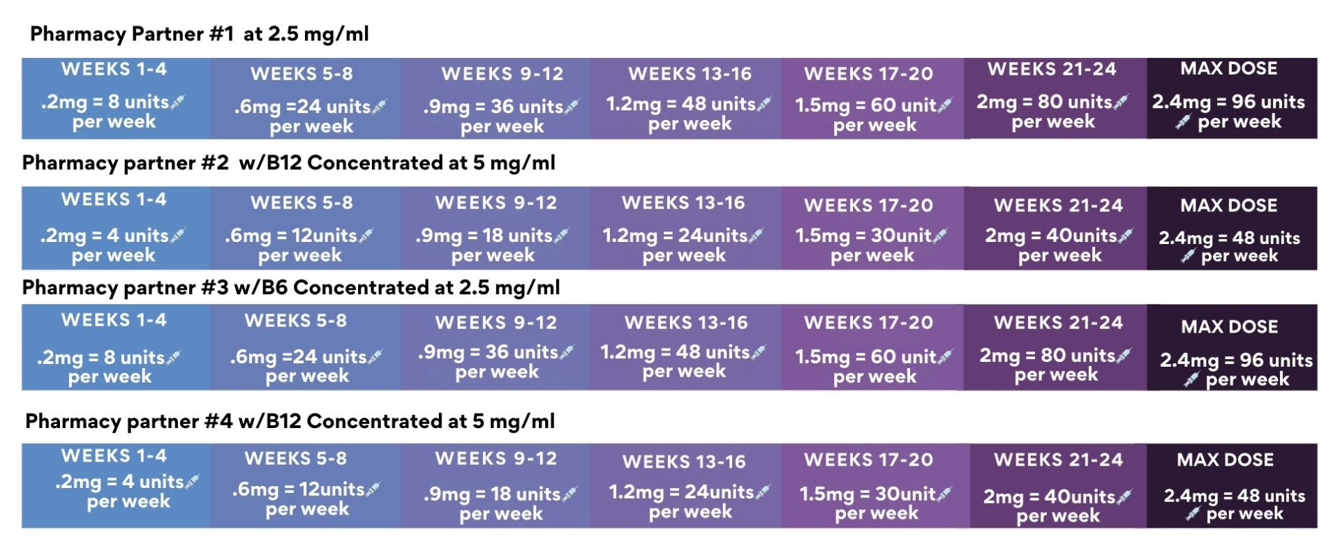 | Pharmacy Partner #2 | 12.5 mg (w/ B12) | 15+ week supply* | $448 |